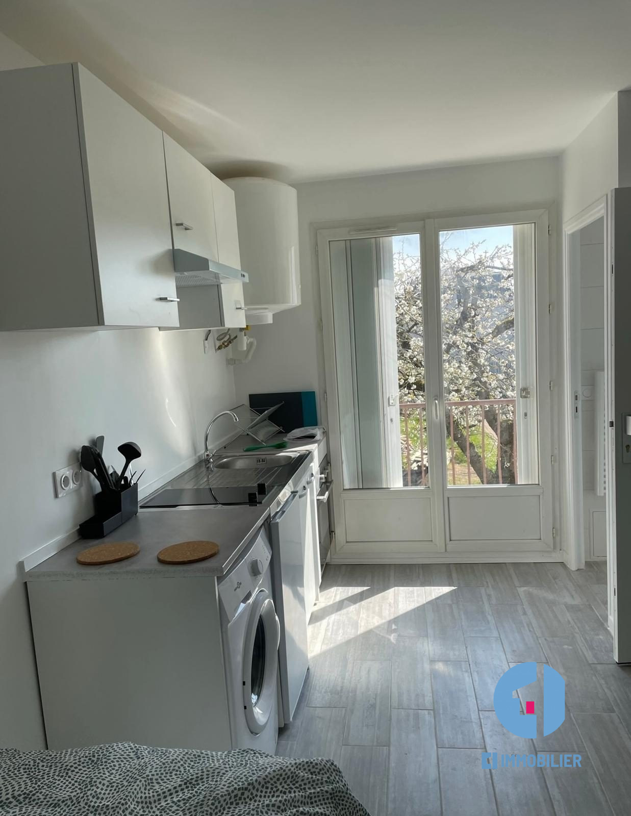 EI Immobilier vous propose, un studio meublé comprenant une pièce avec coin cuisine équipée, salle d’eau avec WC et un balcon